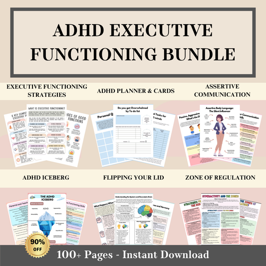 ADHD Executive Functioning Bundle, 280+ ADHD Worksheets, Instant Download