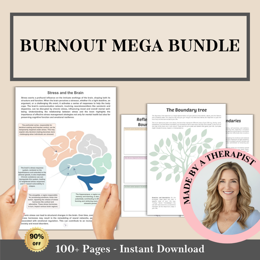 Burnout Mega Bundle, stress management & mental health toolkit, self-care & wellness guide