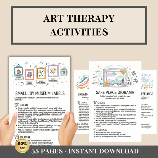 Art Therapy Activities Bundle, Doodle Creative Exercises for Anxiety & Mental Health, Printable Self Care Therapy Worksheets, Journal Pages